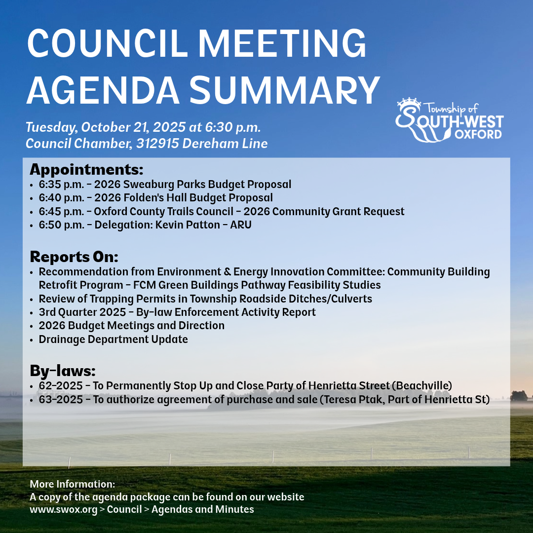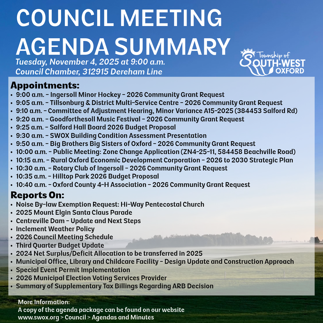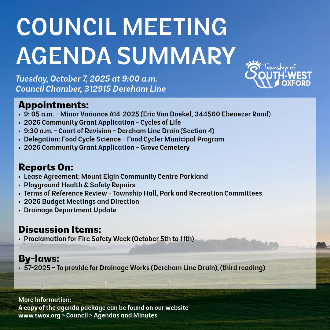 September 2, 2025* *Meeting to take place at the Mount Elgin Community Centre, 333204 Plank Line, Mt Elgin, ON, N0J 1N0 |